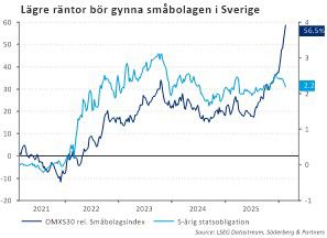 Småbolag: Trots att räntorna fallit något under 2026, går småbolagen fortsatt knackigt. De tyngs av en svag inhemsk konjunktur.