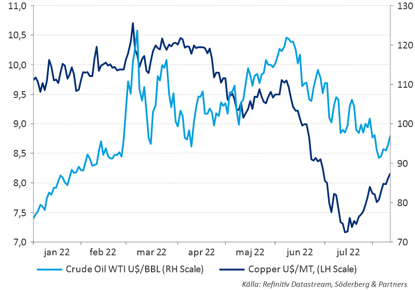 Fallande priser på Olja och Koppar