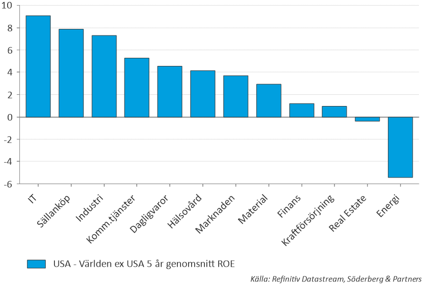 Amerikanska börser har imponerat under året och ständigt noterat nya topprekord. Det är framför allt drivet av en god vinsttillväxt för bolagen och när fokus skiftat från mikro till makro, efter rapportsäsongens slut, framgår dessutom att USA besitter en starkare makromiljö jämfört med många andra delar av världen. Framåt ser vi fortsatt större tillväxtpotential i USA än många utvecklade länder och därmed större utrymme för ökade räntedifferenser. Det ger stöd till dollarn och starkare dollarutsikter i förhållande till andra valutor kan driva investerare till att allokera till amerikanska aktier. Vi väntar oss att de större bolagen fortsätter leverera en god lönsamhet, inte minst inom den betydande IT-sektorn där många bolag dessutom uppvisar stark strukturell tillväxt. Särskilt spännande blir det på tisdag då Apple, vilket är ett av sektorns största bolag, håller sitt traditionsenliga septemberevent där flera nya produkter väntas lanseras, bland annat Iphone 13 och Apple Watch 7. Utöver storbolagen ser vi också förutsättningar i de amerikanska småbolagen, som ger en ytterligare hävstång på den inhemska ekonomin. På indexnivå är de dessutom mer värdeinriktade, med en större andel banker som gynnas av stigande räntor och lägre kreditförluster än tidigare befarat. Vi upprepar därför vårt positiva betyg för amerikanska aktier.