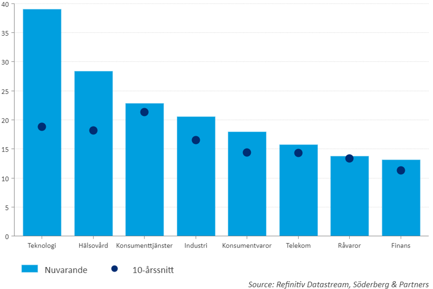 Sandvik är ett av de första OMXS30-bolagen att rapportera och bland de 10 största verkstadsbolagen är förväntansbilden en total resultattillväxt på drygt 30 procent i år, cirka 10 procent under 2022 och 2023, vilket skulle räcka långt om det förverkligas. Tillfälliga flaskhalsar som påverkar årets kvartal kan accepteras men alltför försiktiga framåtblickande kommentarer kommer tas emot negativt. Vi befinner oss i ett starkt konjunkturläge där efterfrågan generellt är stark just nu vilket väntas bli tydligt i orderingången för byggbolagens rapporter. Vi får även svenska bankrapporter där marknaden knappast lär ha överseende med negativa överraskningar efter årets starka kursutveckling. Intressant blir att se hur mycket överskottskapital de har och hur det ska distribueras. SEB har tidigare sagt att återköp ska prioriteras och Nordea, som redan delat ut 7,3 kronor per aktie efter utdelningsrestriktionerna drogs tillbaka, har fått godkänt av ECB att göra återköp på drygt 20 miljarder kronor. Ett kvartal av stigande långräntor har gynnat bankerna, vars marginaler förbättras men det motsatta gäller för fastighetsbolagen som också rapporterar i veckan. För tillväxtbolagen spelar värdering allt större roll när räntorna stiger, varför högt värderade tillväxtbolag måste leverera en fortsatt fin tillväxt under Q3 och framförallt i utsikterna för kommande kvartal. Annars är risken stor att marknaden kan bli besviken och värderingsmultiplarna pressas.
