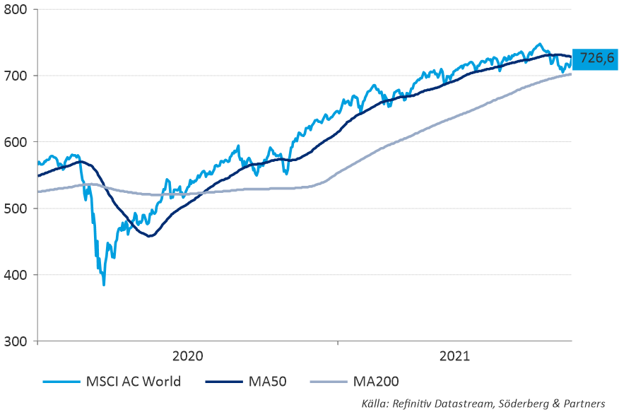 Ur makrosynpunkt har marknadens fokus framför allt legat på inflationssiffrorna, med bland annat amerikansk KPI som rapporterades i onsdags och svensk KPI som kom i torsdags. Den amerikanska inflationen steg i september till 5,4 procent på årsbasis jämfört med 5,3 procent i augusti, vilket var marginellt högre än förväntningarna om 5,3 procent även i september. Kärninflationen, justerat för mat och energipriser kom dock in på väntade 4,0 procent, vilket tydligt visar vilken effekt de höga energipriserna i dagsläget har. För svensk del kom KPIF, som mäter inflation med fast ränta och är det mått Riksbanken använder sig av, in på 2,8 procent vilket är högre än föregående månads 2,4 procent men lägre än förväntningarna om 3,0. Detta är den högsta svenska inflationen sedan oktober 2008, men även här ser vi en stor påverkan av de höga energipriserna. KPIF exklusive energi landade i september på 1,5 procent. Utöver inflationssiffror bjöds vi i tisdags på IMF:s World Economic Outlook, som kommunicerar IMF:s syn på utsikterna för den globala tillväxten. Den globala tillväxten väntas landa på 5,9 procent 2021, vilket är en nedrevidering från tidigare prognostiserade 6,0 procent, men fortfarande en hög siffra. Den globala prognosen för 2022 ligger kvar på 4,9 procent. Utsikterna för USA:s tillväxt 2021 togs ned från 7,0 till 6,0 procent, vilket sker till följd av något mer deppiga konsumenter, stigande energipriser och problem med stimulanspaketen.