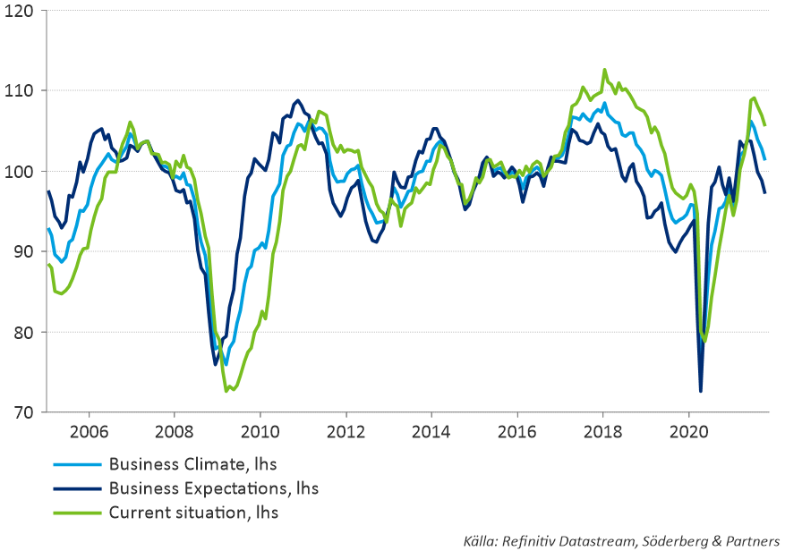 Inflationen och dess orsaker, verkan och implikationer är i hög grad i marknadsfokus. Är nuvarande höga inflationstryck övergående eller är det bestående? Kommunikationen från de tongivande centralbankerna är fortsatt att inflationstakten kommer att dämpas, vilket också är vår bedömning i nuläget. Kraftiga prisförändringar på bland annat insatsvaror och energi har en tydlig koppling till återöppnandet efter att covid-restriktionerna fasats ut och dessa effekter är betydande men också tillfälliga. Finansmarknaderna är också i stor utsträckning inställda på och prissatta för detta, men en osäkerhet finns för de politiska risker de kraftiga prisstegringarna kan medföra. Riskaptiten är fortsatt god vilket stigande börser och en hög affärsaktivitet bland börsbolagen är några exempel på. Vi bedömer att den starka marknadsutvecklingen har goda förutsättningar att fortsätta de kommande månaderna men vi ser också en ökad risk för priskorrigeringar då ökande smittspridning kan leda till förnyade nedstängningar i många länder och försämra de ekonomiska utsikterna på kort sikt. Företag med koppling till konsumentvaror kommer sannolikt också att vara i marknadsfokus denna vecka inför det för detaljhandeln viktiga Black Friday eventet, som går av stapeln den 26:e november, där leveransproblem riskerar att vara en begränsande faktor för omsättningen.