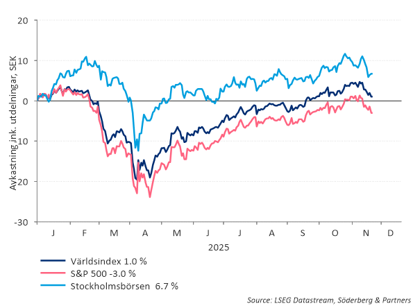 Ta del av aktuell börsutveckling på världens börser, i lokal valuta och i svenska kronor.