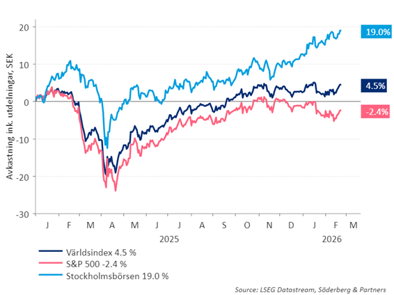 Ta del av aktuell börsutveckling på världens börser, i lokal valuta och i svenska kronor.